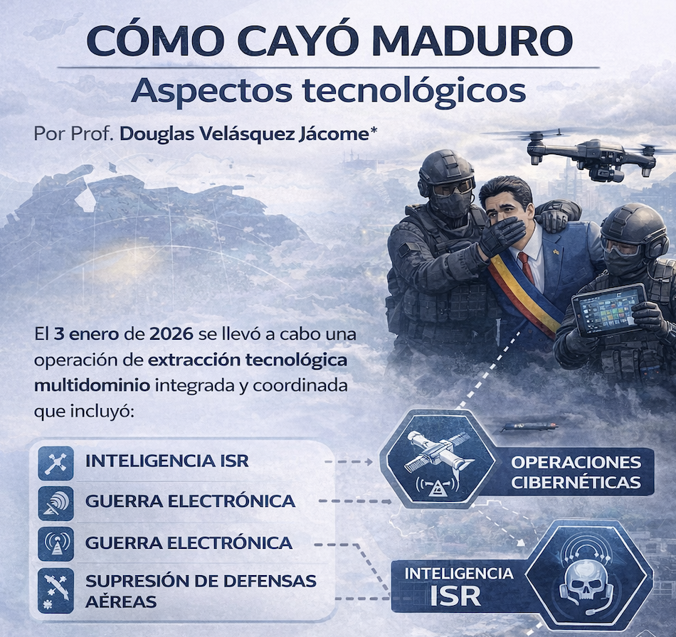 Desde un enfoque académico y tecnológico (no político), la “captura extracción” de Nicolás Maduro ocurrida el 3 enero de 2026, podría llamarse como una operación tecnológica multidominio consistente en la integración coordinada de varios elementos como inteligencia (ISR), ciberoperaciones, guerra electrónica, supresión de defensas aéreas, comando y control para reducir la incertidumbre táctica y maximizar la sorpresa.